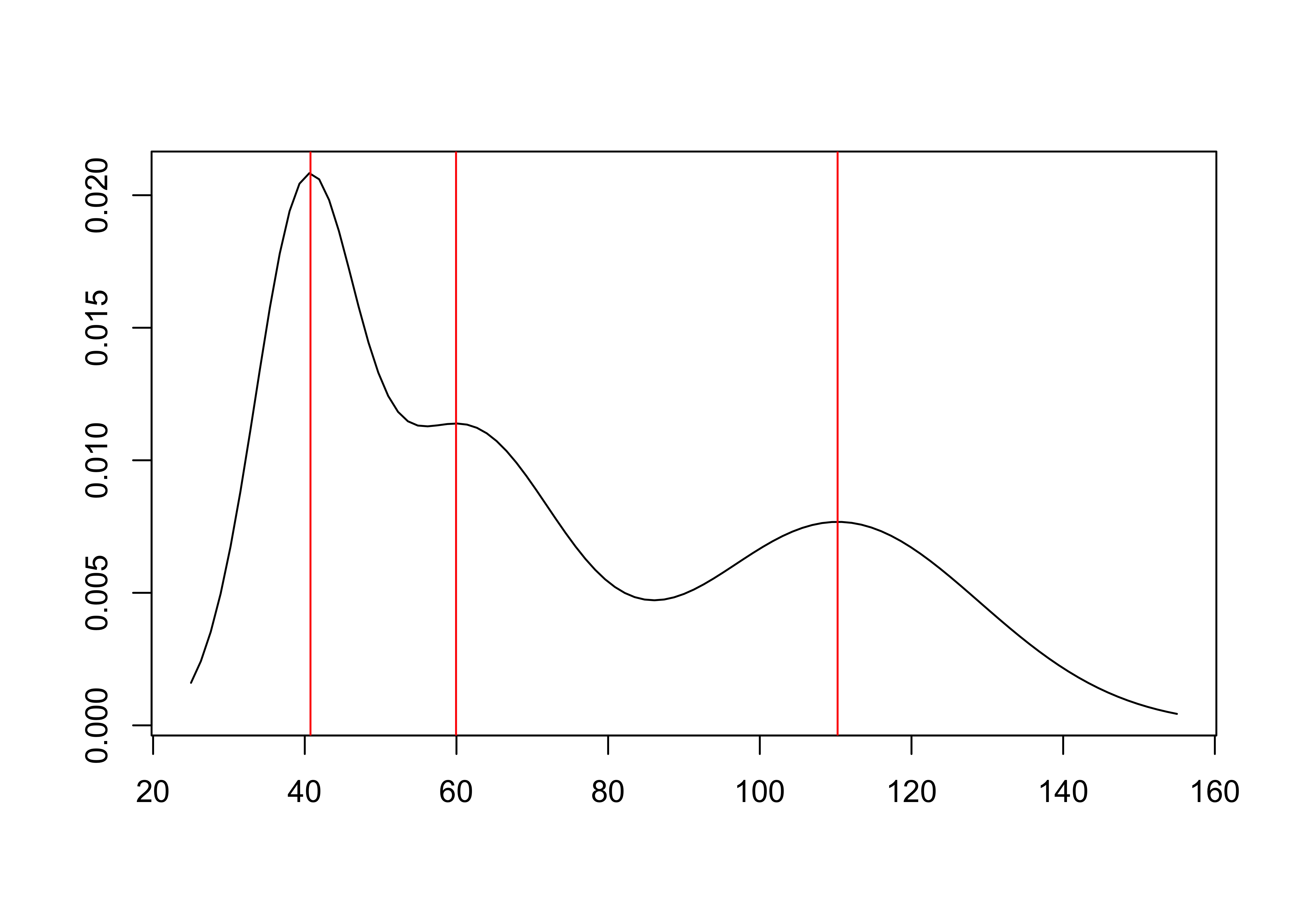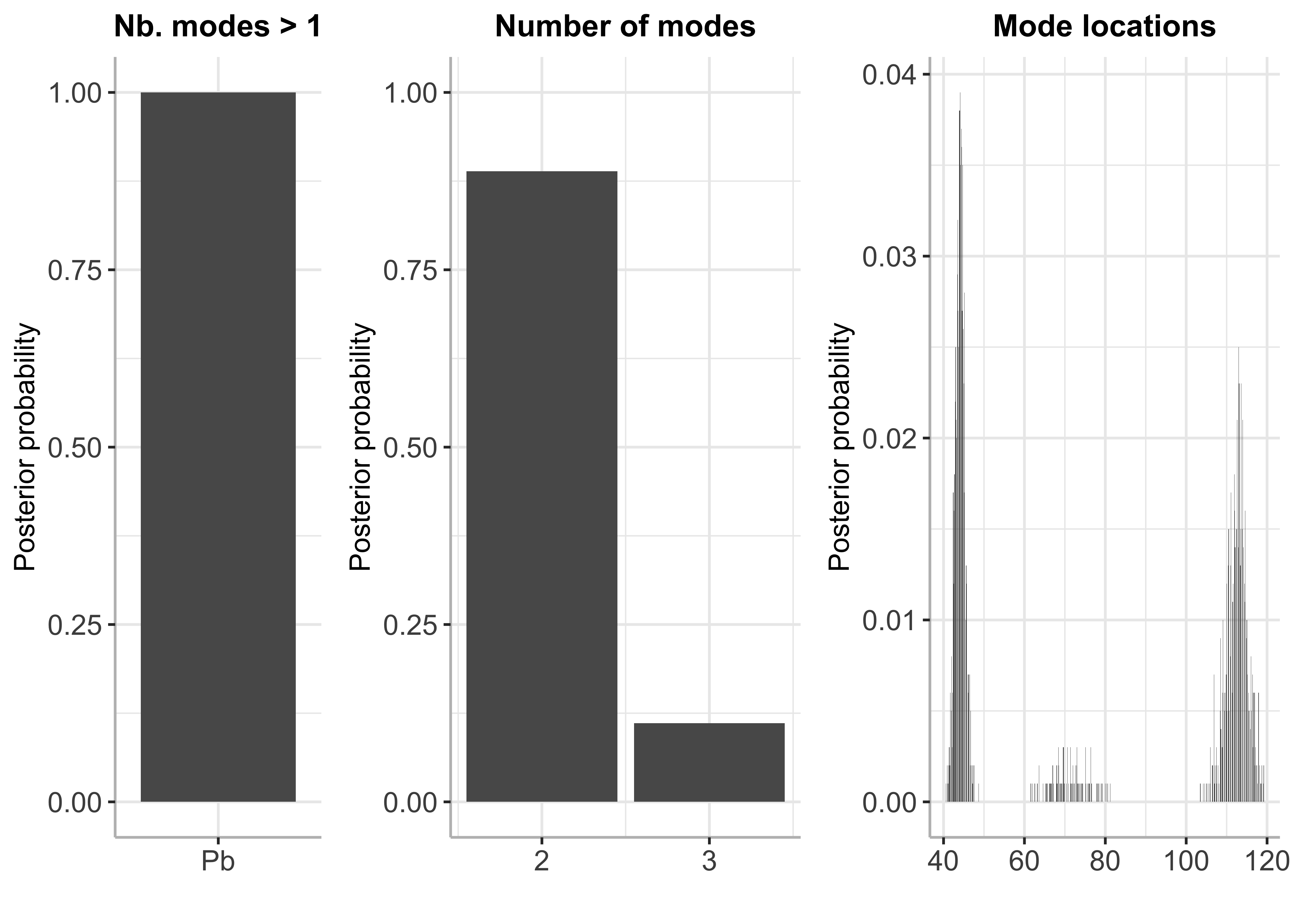 summary(bayesmode)## The posterior probability of multimodality is 0.988