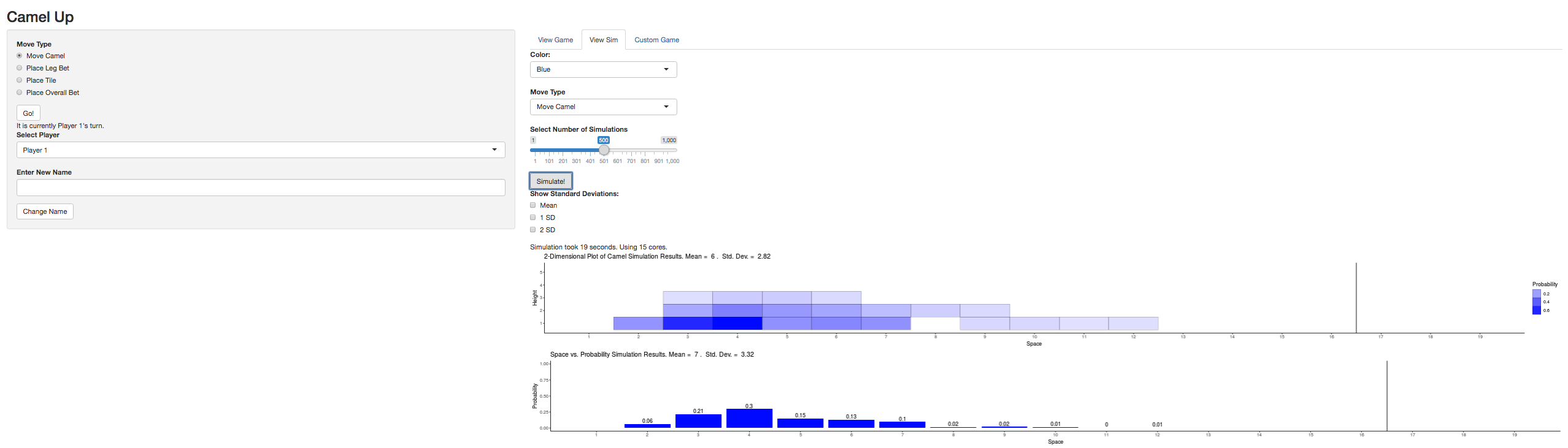 #playCamelUp()This will start a local shiny app with some of the functionality shown below: