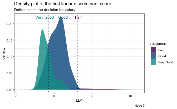 #> [1] "Every observation in node 2 is predicted to be Fair"To make predictions:
