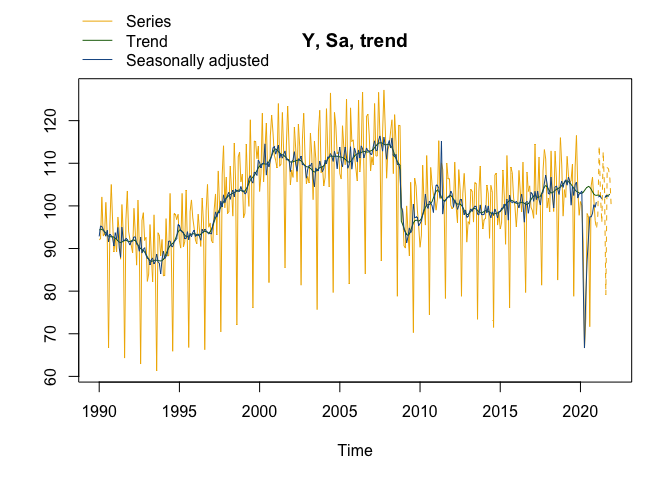 x13_model <- x13(myseries) # X-13ARIMA method