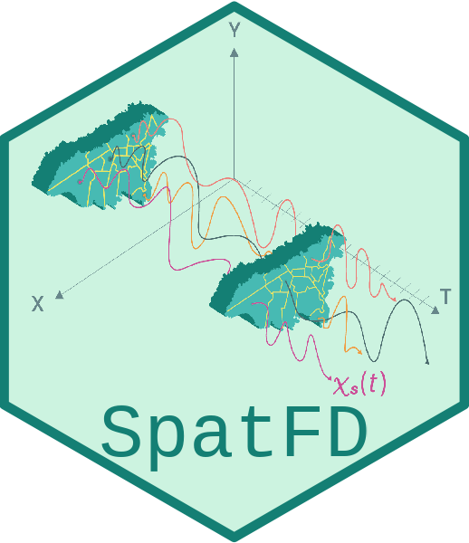 The package provides new classes of data and functions for modeling spatial dependence structure among curves. The spatial prediction of curves at unsampled locations can be carried out using two types of predictors, and both of them report, the respective variances of the prediction error. In addition, there is a function for the determination of spatial locations sampling configuration that ensures minimum variance of spatial functional prediction. There are also two functions for plotting predicted curves at each location and mapping the surface at each time point, respectively.