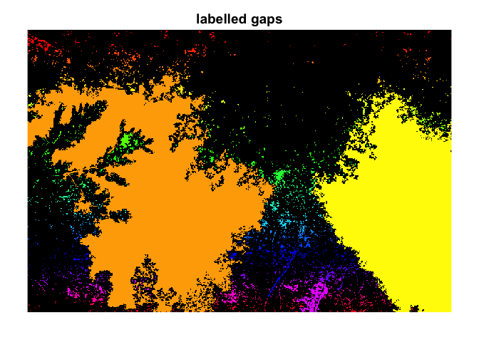 The function returns a single-channel raster image with each gap with a numeric unique label: