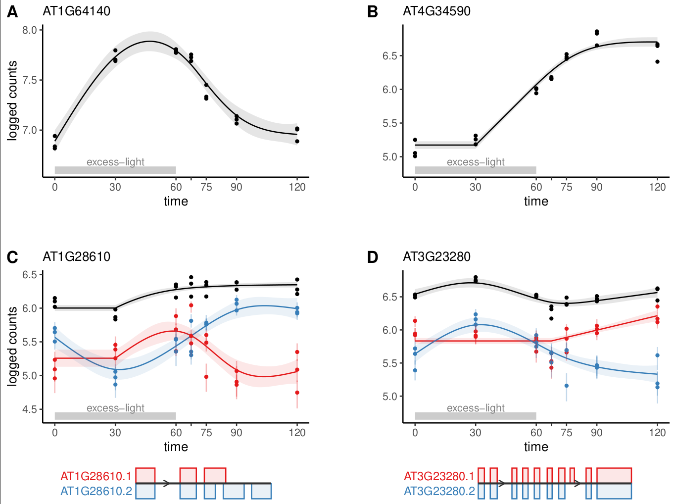 Application of cpam to RNA-seq time series of Arabidopsis plants treated with excess-light.
