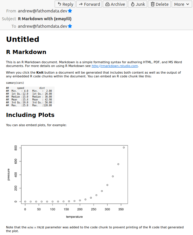 render("message.Rmd", css_files = "extra.css")If you are having trouble getting this to work with Gmail then it might be worthwhile taking a look at their CSS support.