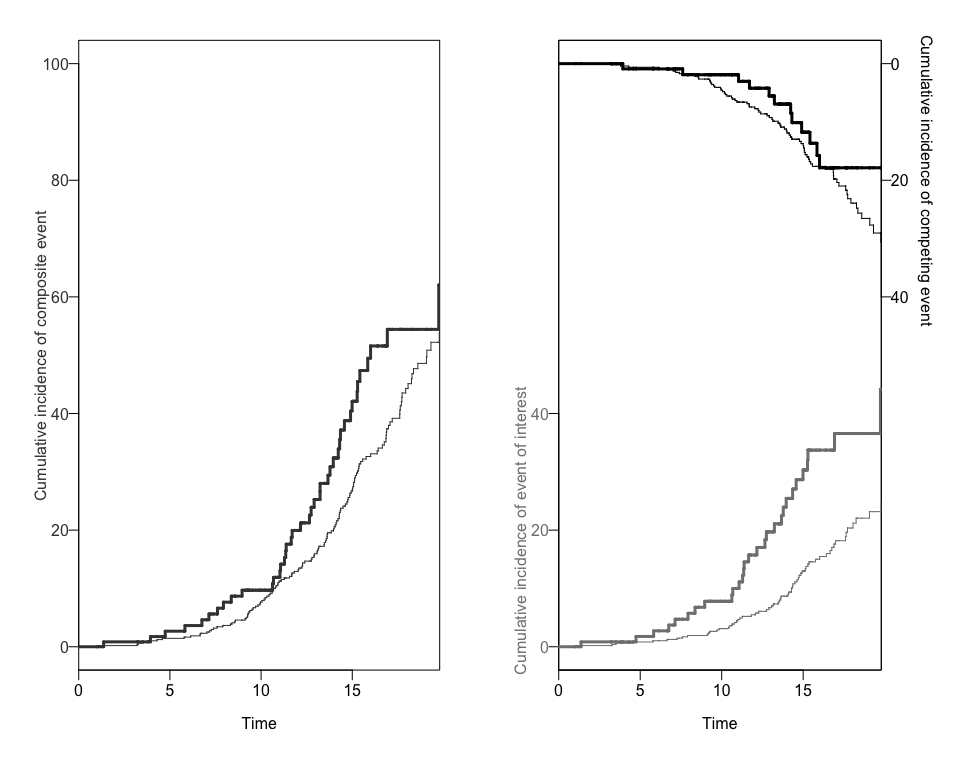 cumulative incidence of each competing risk for each exposure group. We