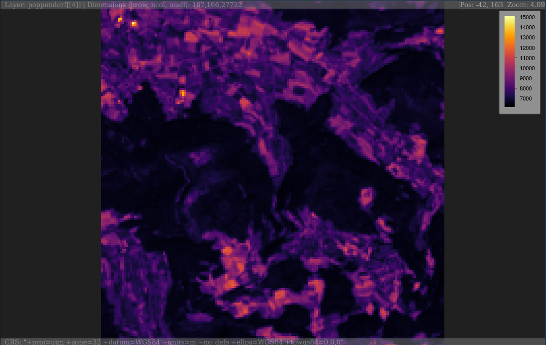 plainview(poppendorf, r = 5, g = 4, b = 3) # false color