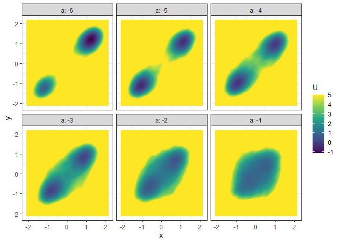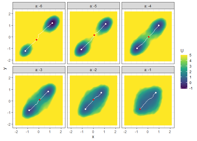 4. Construct 2d, 3d, 4d potential landscapes based on the simulation outputs;