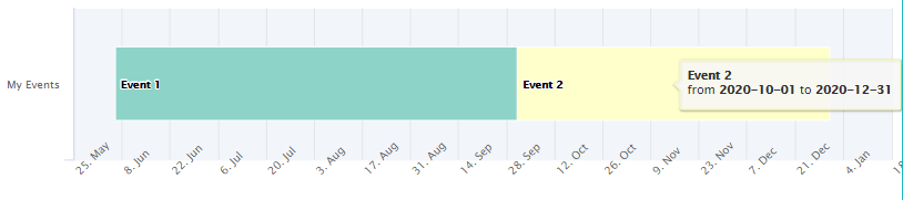 #> 1 Event 1 2020-06-06 2020-10-01 My Events  from <b>2020-06-06</b> to <b>2020-10-01</b>  #8DD3C7       1   1