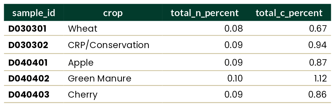 washi provides an example dataset, which was subset and anonymized from the WaSHI State of the Soils Assessment. This dataset comes in a long, tidy form with one measurement per row; and in a wide form with one sample per row. Its purpose is to provide an example soils dataset to use in plots and tables.