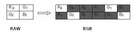 The Coriander application is useful in finding out how the RGB image will look after undergoing different conversion algorithms. For example, it provides the choice between Nearest Neighbor, Edge Sense and Down Sample conversion algorithms. The difference can be observed on a mouse click.