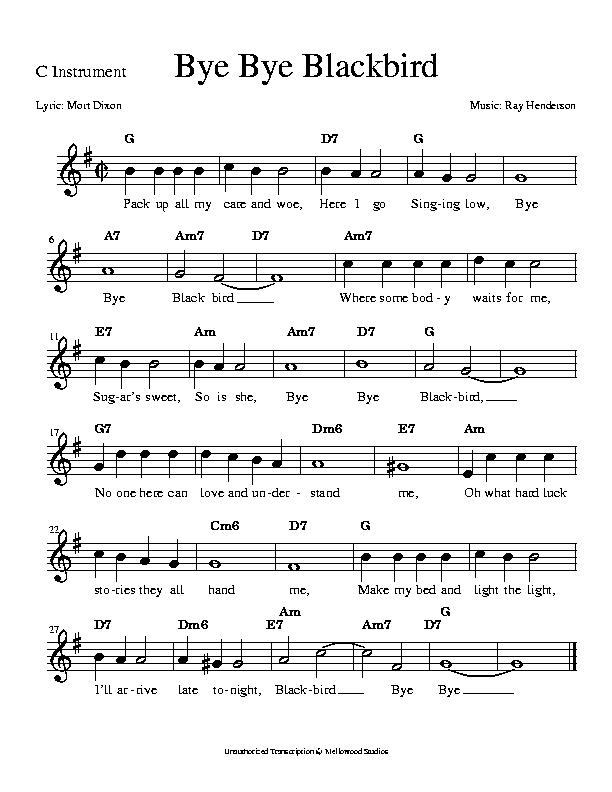 I have included the actual mup file I created for Bye Bye Blackbird and a printed music image.