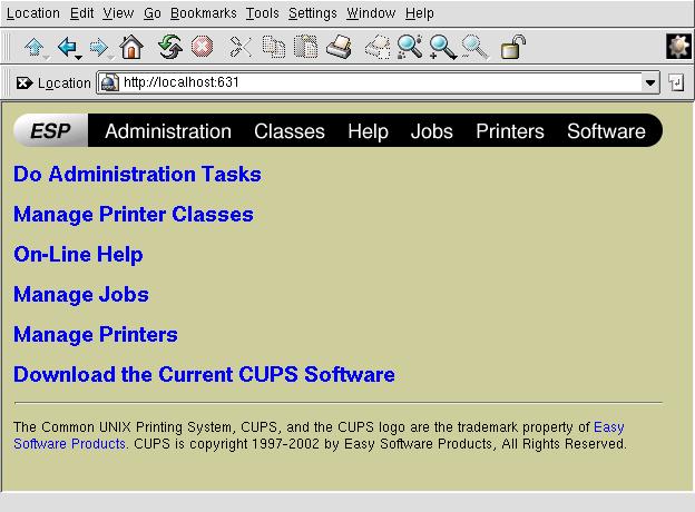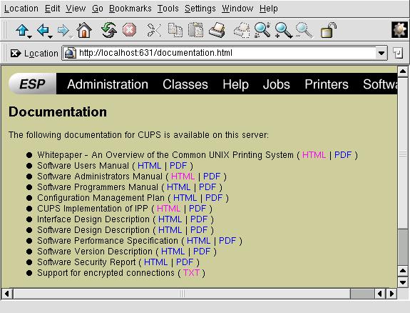 The web interface has a comprehensive help system with plenty of documentation about what CUPS is and how to configure it.
