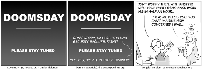 The Ecol comic strip is written for escomposlinux.org (ECOL), the web site tha t supports, es.comp.os.linux, the Spanish USENET newsgroup for Linux. The strips are drawn in Spanish and then translated to English by the author.