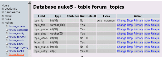 Other options of PHPMyAdmin that are not relative to the installation of PHP-Nuke, but still useful for the administration of the database, can be found in Section 3.3.