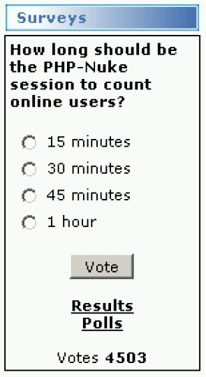 It lists the 10 most downloaded files. Read Section 27.6 if you are looking for a quick way to enter thousands of Downloads links. Further, in Section 18.10 we show how to modify the PHP-Nuke Downloads module.
