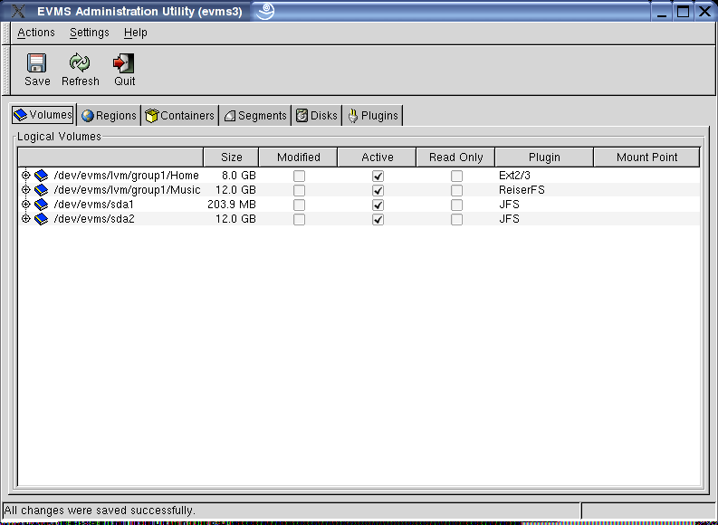 The Linux LVM plug-in provides compatibility with the Linux LVM and allows the creation of volume groups (known in EVMS as containers) and logical volumes (known in EVMS as regions).