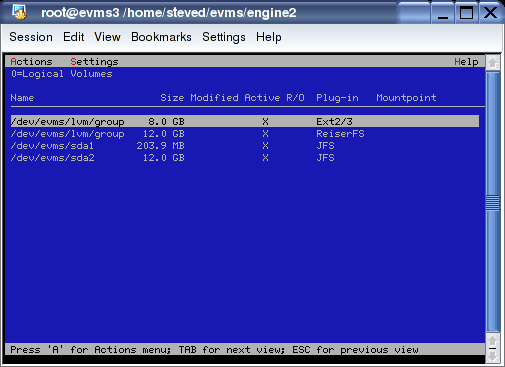 EVMS brings a new model of volume management to Linux®. EVMS integrates all aspects of volume management, such as disk partitioning, Linux logical volume manager (LVM) and multi-disk (MD) management, and file system operations into a single cohesive package. With EVMS, various volume management technologies are accessible through one interface, and new technologies can be added as plug-ins as they are developed.