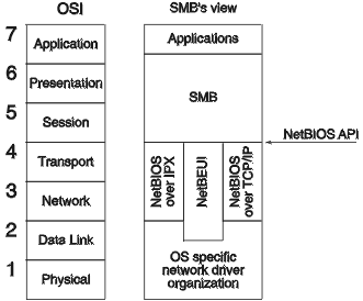 Understanding how Samba does its job is easier if you know a little about how Windows networking works. Windows clients use file and printer resources on a server by transmitting ``Server Message Block'' over a NetBIOS session. NetBIOS was originally developed by IBM to define a networking interface for software running on MS-DOS or PC-DOS. It defines a set of networking services and the software interface for accessing those services, but does not specify the actual protocol used to move bits on the network.