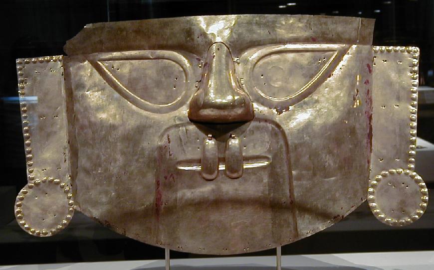 This gold mask is of Peruvian origin.