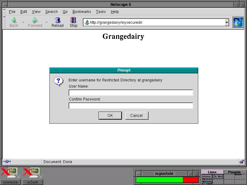 Once you have entered the correct details you should then be off and away. You may find however that you can connect to the "mysecure" directory without having to supply any credentials. If this happens, you need to check the following in your "/etc/httpd/httpd.conf" file.....