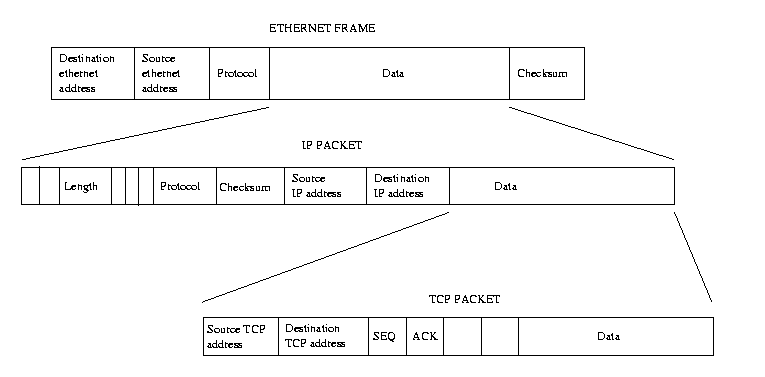 Whenever you connect to another machine, say when reading a web page, its IP address is used to exchange data with that machine. This data is contained in IP packets each of which have an IP header containing the IP addresses of the source and destination machine's IP addresses, a checksum and other useful information. The checksum is derived from the data in the IP packet and allows the receiver of IP packets to tell if the IP packet was corrupted during transmission, perhaps by a noisy telephone line. The data transmitted by an application may have been broken down into smaller packets which are easier to handle. The size of the IP data packets varies depending on the connection media; ethernet packets are generally bigger than PPP packets. The destination host must reassemble the data packets before giving the data to the receiving application. You can see this fragmentation and reassembly of data graphically if you access a web page containing a lot of graphical images via a moderately slow serial link.