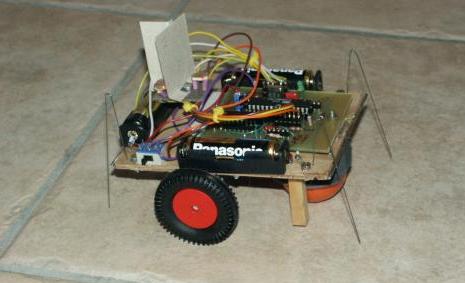 Das Design unseres neuen Roboters ist ganz anders. Er ist billig und man kann ihn mit Teilen bauen, die es fast überall auf der Welt geben sollte. Es ist ein autonomer Roboter, der von einem AVR Microcontroller gesteuert wird. Als ein autonomer Roboter (der nicht von einer Person gesteuert wird), haben wir ihn so programmiert, daß er zur hellsten Stelle in einem Raum rennt.