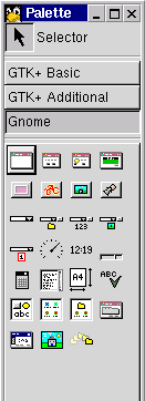Diese Widgets sind alle in der Klasse Gnome der Werkzeugleiste Palette zu finden.