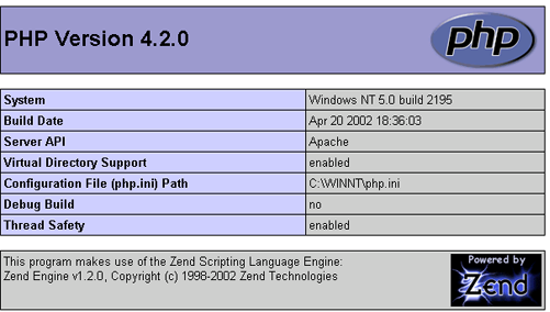 To make sure that Apache and PHP have been installed correctly on our system, we will use the phpinfo() function of PHP, which asks the server to give information about the PHP configuration. If we get a screen like the one of Figure 3-19, then everything is working correctly.